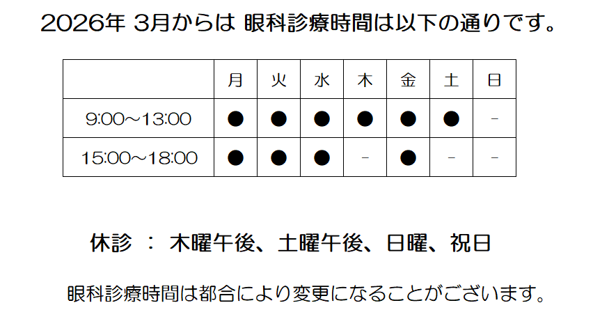 2026年3月より木曜日・土曜日が午後休診となります。