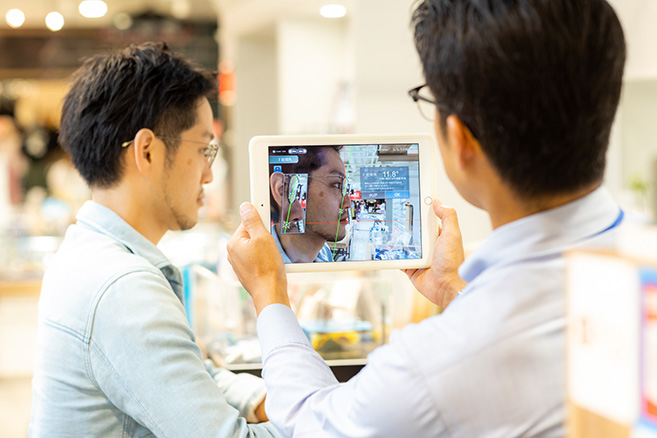 その後、専用アプリで顔とフレームのフィット具合を計測した。